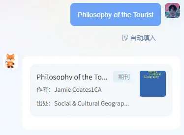 不管是中文题名(如《应用气象学课程思政建设研究与实践》)、外文题名(如 "Philosophy of the Tourist"),还是 DOI(如 10.3390/app15052407)、ISBN(如 978-7-5136-1091-9),直接粘贴到搜索框,系统秒级匹配对应文献。